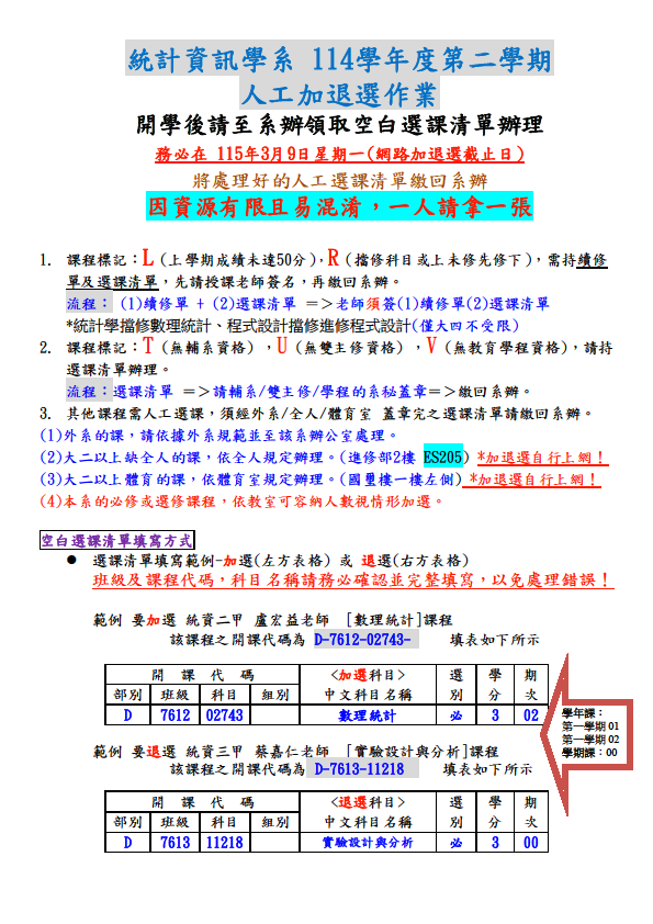 114學年度第二學期 人工加退選作業
