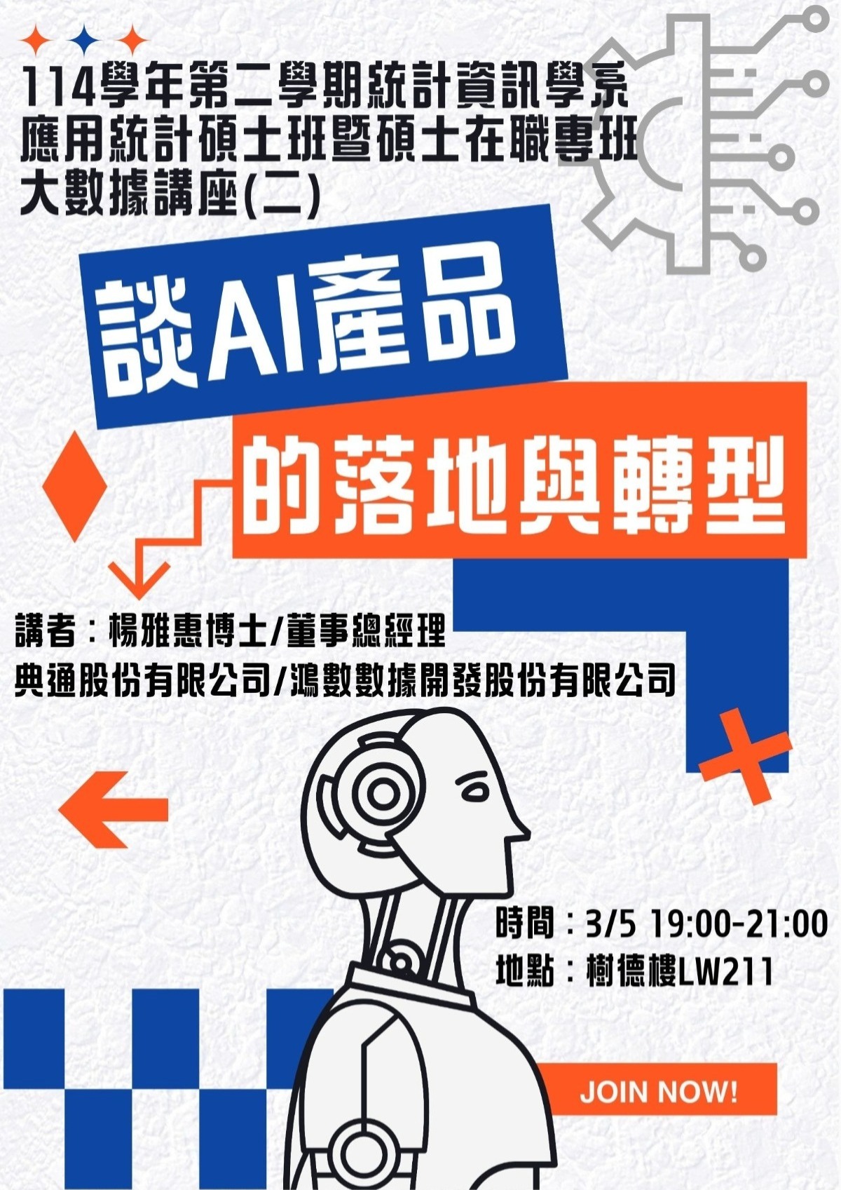 115/3/5大數據講座(二):【談AI產品的落地與轉型】