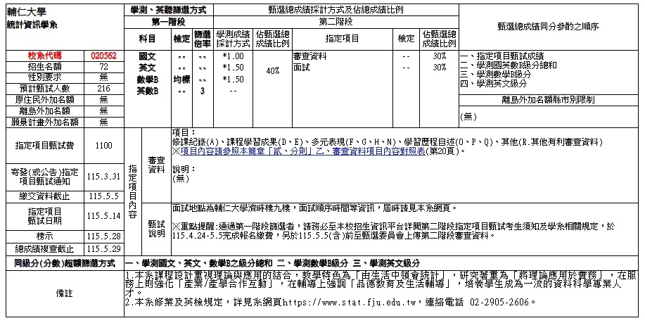 報名第二階段,請至本校招生資訊平台 https://exam.fju.edu.tw/admission