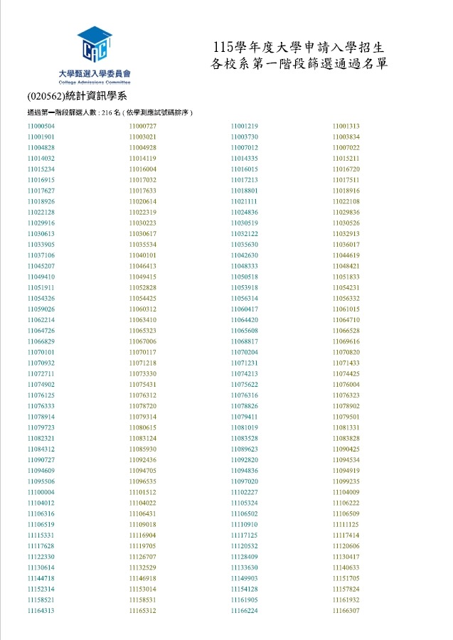 大學甄選入學委員會 ~115申請入學 https://www.cac.edu.tw/apply115/result.php