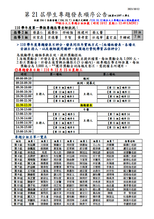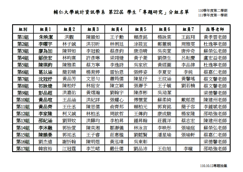 (因部分大四組別未派代表到場,由系辦代抽,請另至系辦領取專題封面色卡。)