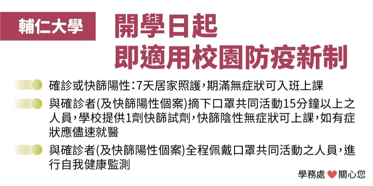 三、防疫假請假期間如遇考試,請依「輔仁大學學生考試請假規則」逕向教務處辦理。
