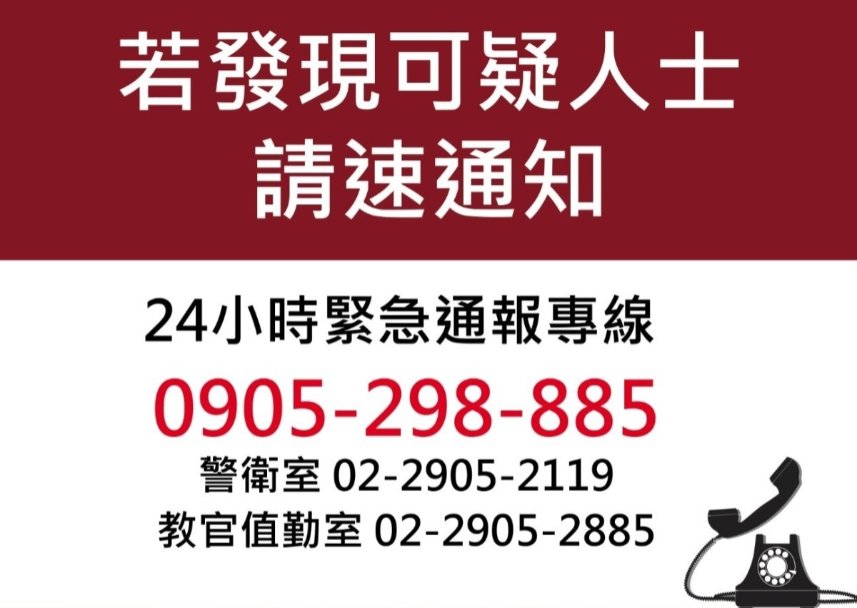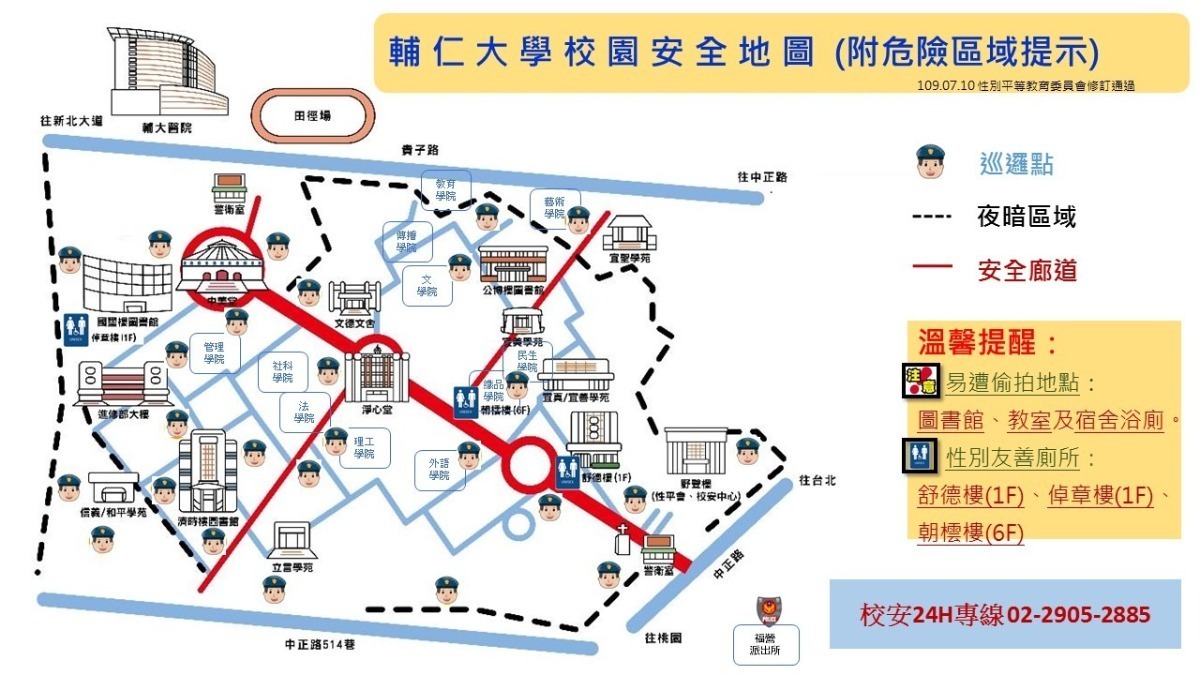輔仁大學校園安全地圖 & 通報專線 0905-298-885 (校安通報 2905-2885)