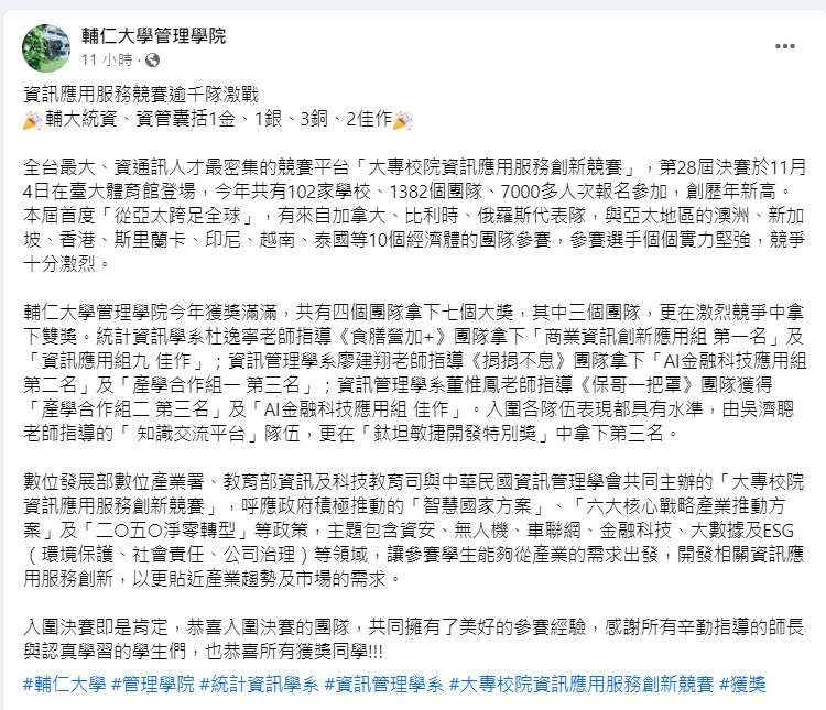 感謝輔仁大學管理學院 粉絲頁報導第一手消息(請按讚追蹤起來)