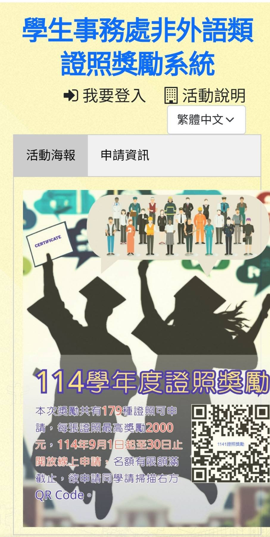 114學年度證照獎勵 (9/1~9/30 名額有限)