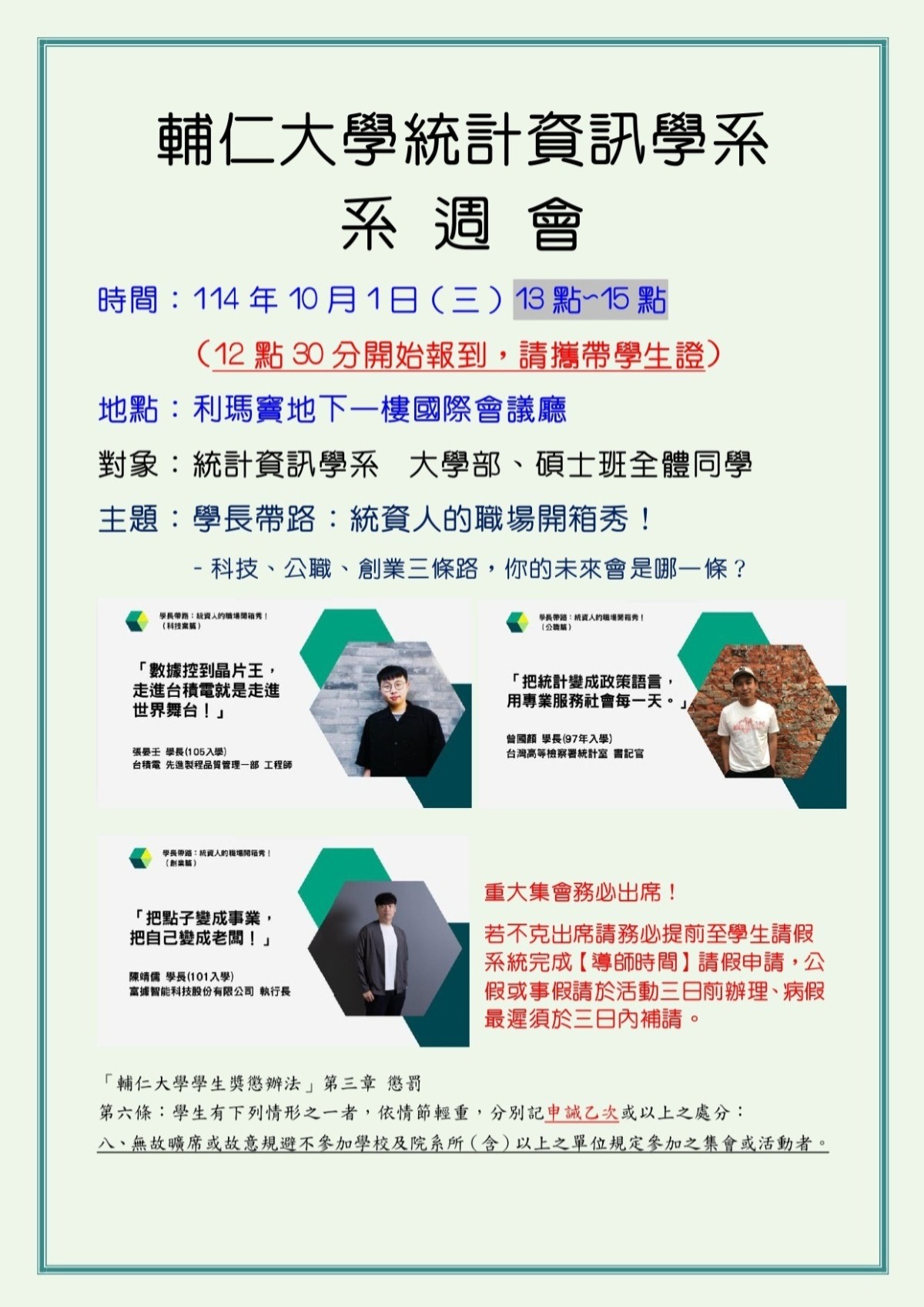 114學年度 系週會( 10月1日星期三 13點~15點)