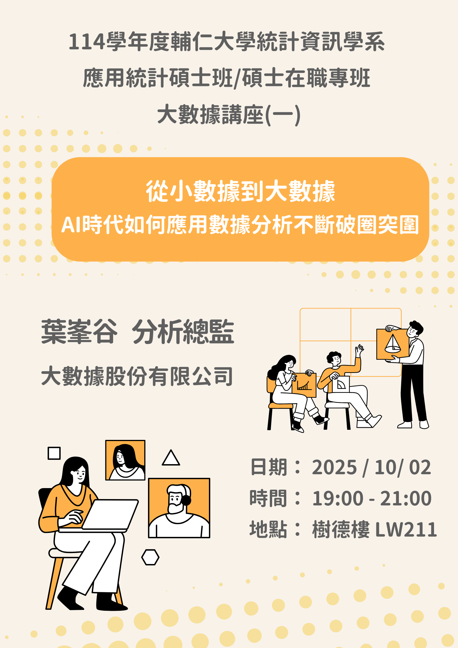 114/10/2大數據講座(一) :從小數據到大數據 -AI時代如何應用數據分析不斷破圈突圍