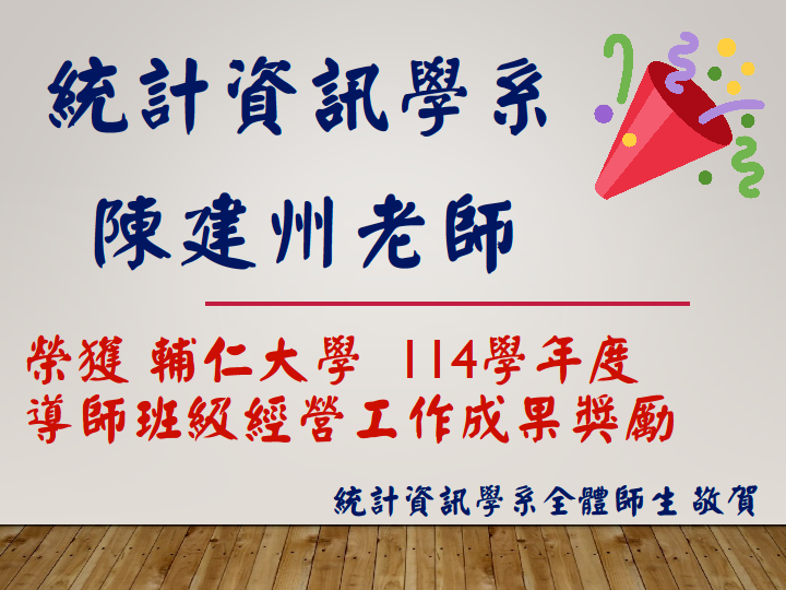 恭賀陳建州老師~榮獲114學年度 導師班級經營工作成果獎勵