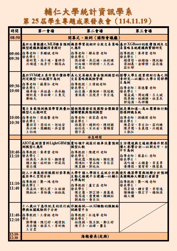 輔仁大學統計資訊學系 第二十五屆統計專題成果發表會